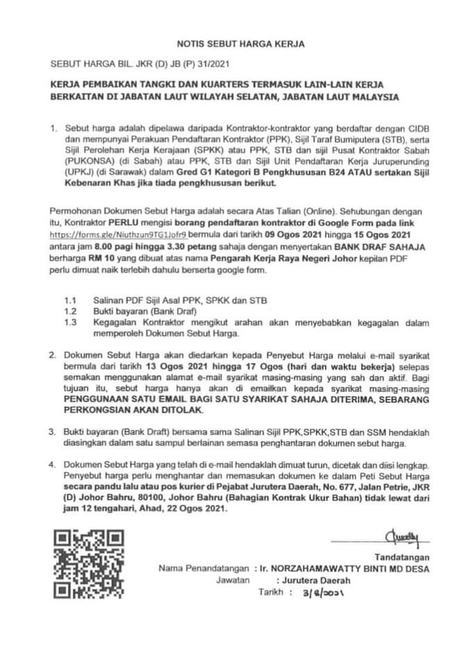 Sebutharga Jkr Daerah Johor Bahru Malaya